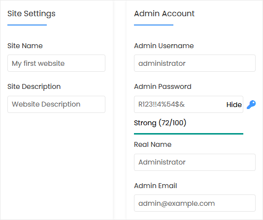• Site Name: Enter the name of your website, such as my first website.