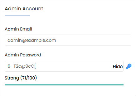 • Admin Username: Your new Fork username (for security reasons, do not use the administrator or the admin username).